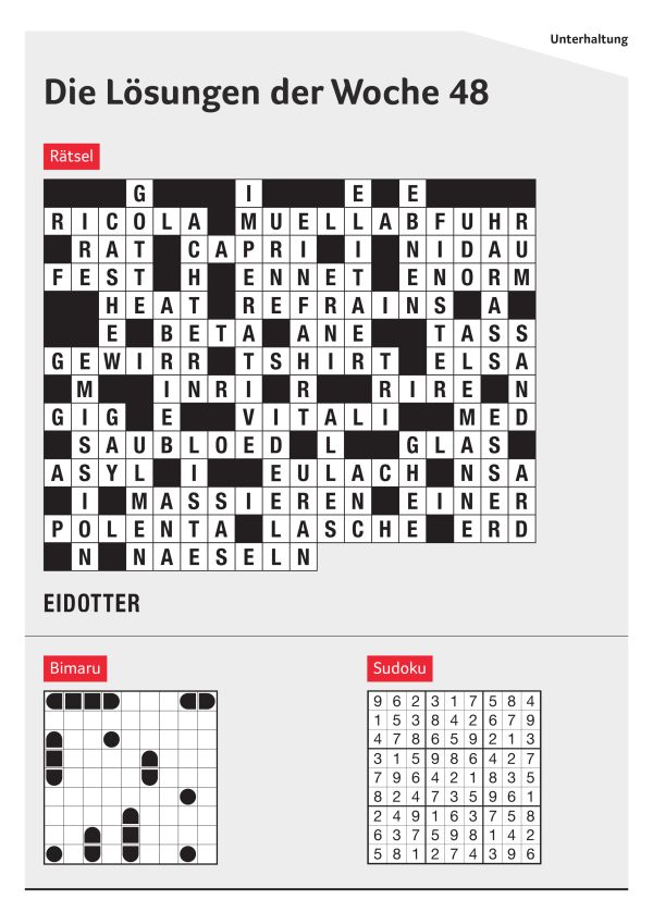Hier finden Sie regelmässig die Rätsel-Lösungen aus der Express-Zeitung. Wir wünschen Ihnen viel Spass!