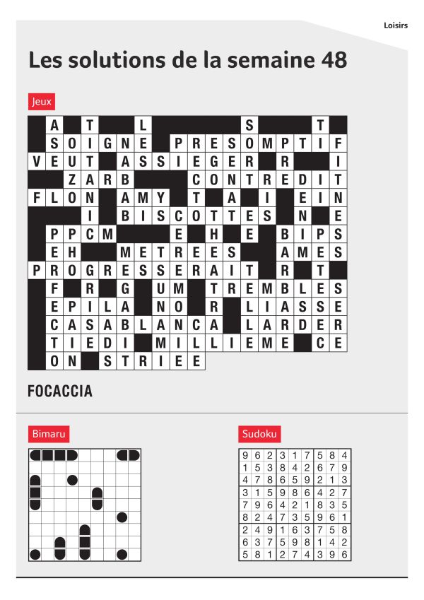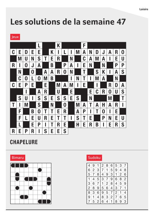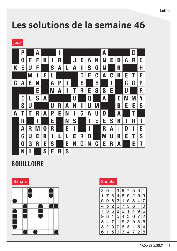 Vous trouverez ici régulièrement les solutions des jeux parus dans l’Express. Nous vous souhaitons «bonne chance»!